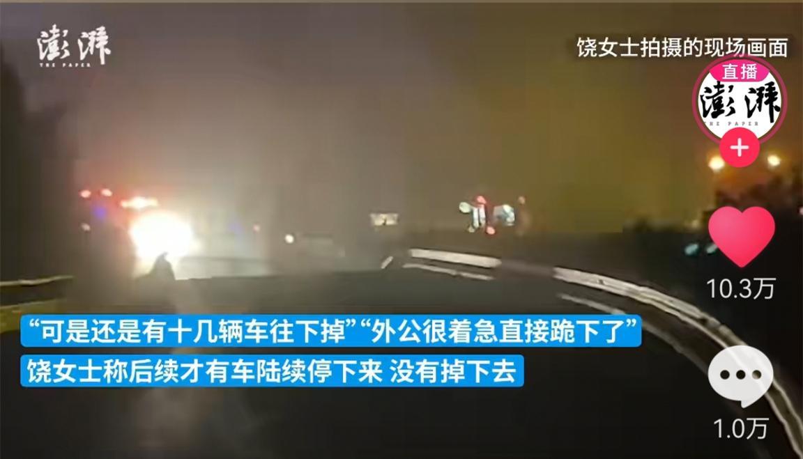 彼時,饒女士的外公看到這個情況都快急哭了,爲了後面源源不斷湧來的車輛的安全,他們一家人打開手機閃光燈試圖攔停後方車輛,饒女士的外公更是急得直接下跪攔車。