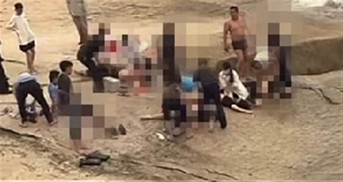 從視頻中可以看到,有5人一動不動的躺在海灘上,在他們的身邊有很多人在對他們進行心肺復甦。