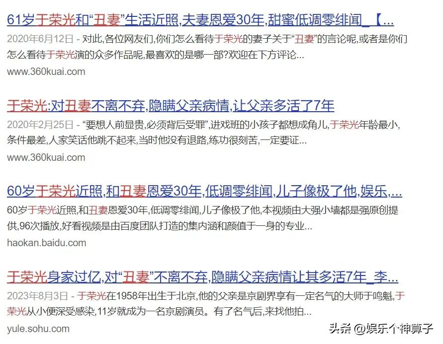 部分自媒體人雖然沒有明目張膽對王玉苓的面相進行攻擊,但是他們通過一種比較高級的做法,同樣對王玉苓進行了侮辱。比如:於榮光結婚30多年,一直努力拍戲,只爲家庭生活過得好一點。