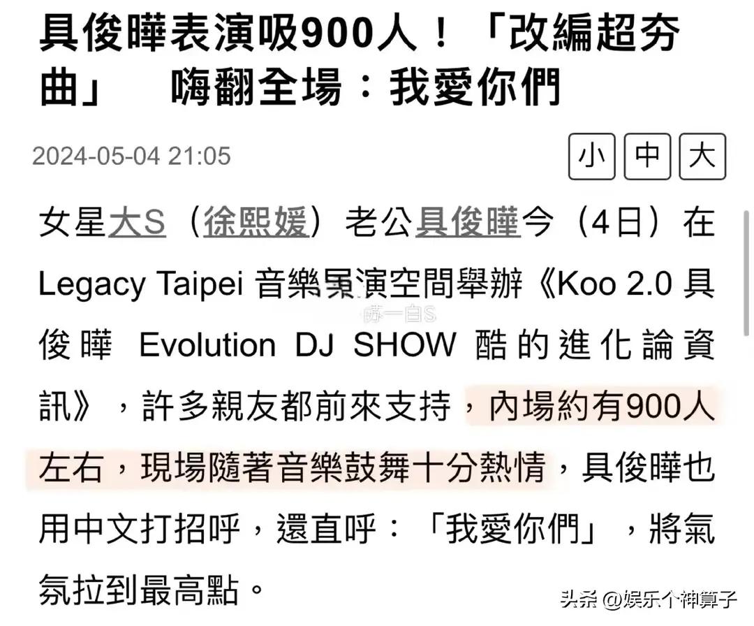 這麼一看,單張票價1280臺幣,900多人前來觀看,收入十分可觀,如果多舉辦幾場,就更厲害了,難怪大S如此的開心,光頭也可以賺錢養家了。