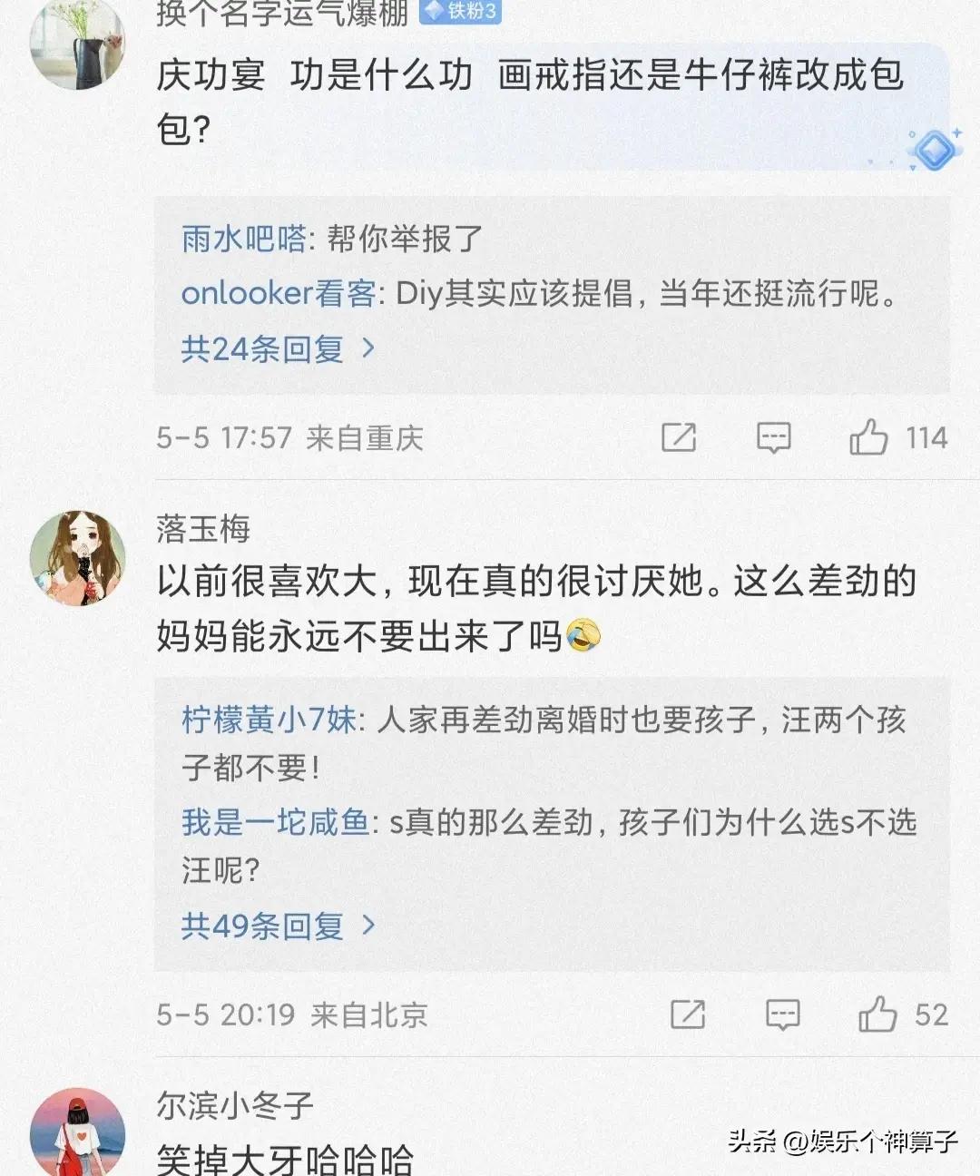 一些網友紛紛表示:開汪小菲的車,睡前夫的牀墊,還挺開心,慶功宴,功是什麼功?畫戒指,還是牛仔褲改成包包?