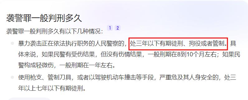 襲警則會判處三年以下有期徒刑、拘役或者管制。