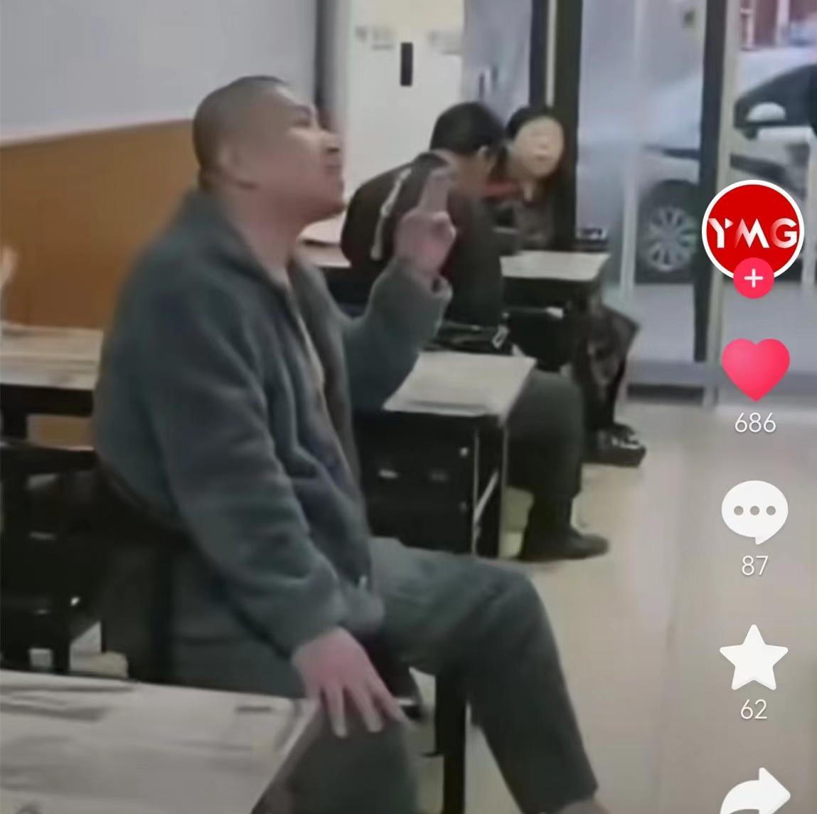 有意思的是,當老闆娘報警,男子一點也不害怕,他不僅不逃跑,還坐在一張凳子上,抽起了煙,看起來十分瀟灑。
