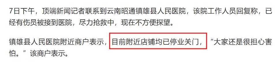 事發之後,行兇者從醫院逃離,而他在醫院所做之事很快在當地傳開,引得當地人心惶惶,涉事醫院附近商家紛紛關門歇業,避免招致禍端。