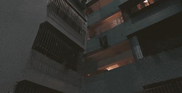 某個小區樓裏,反派不管不顧直接將某居民往下扔。