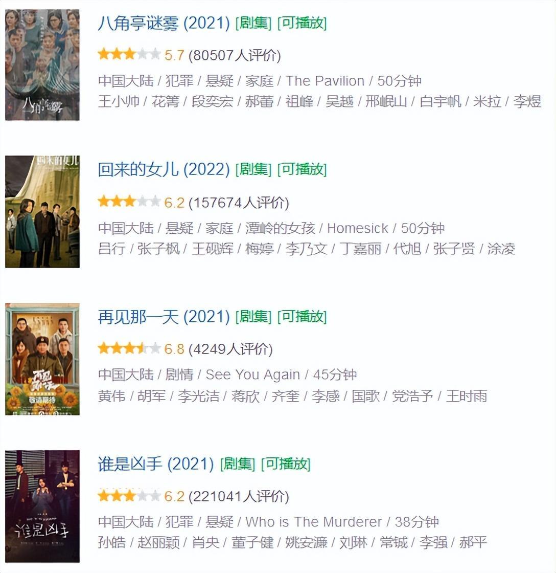 但這些作品整體口碑均很一般,6部劇裏的最高分也僅有6.8分...