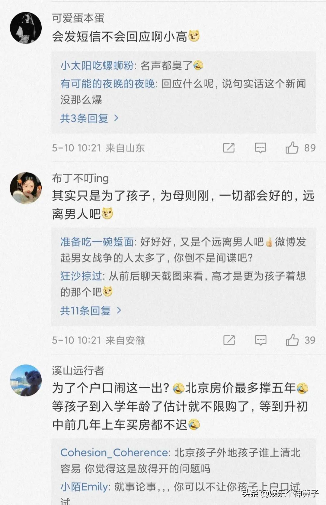 一些網友也提出質疑,爲了個戶口鬧這一出嗎?孩子大一點再考慮,也不晚吧,到底圖啥?一個人帶孩子不容易,高亞麟能發短信,爲啥不出來回應。