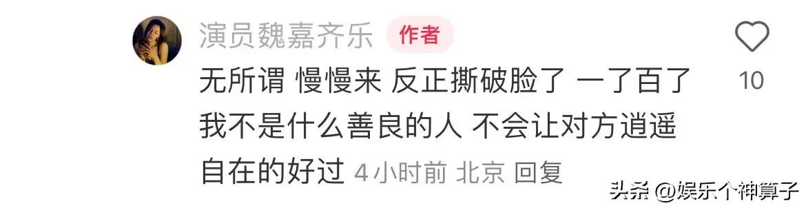 然而,回看魏嘉之前的發文和爆料,以及回覆網友的留言,還有各種聊天記錄和轉賬截圖,並提及另一位女演員,並直言想讓男方塌房,這……,句句都是狠話。