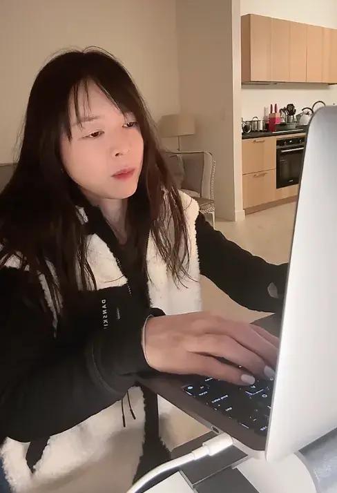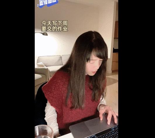 她主打一個全程沉浸式,和網友無交流無互動,甚至一個多餘的眼神都沒給,就安安靜靜地坐在那裏學作業。