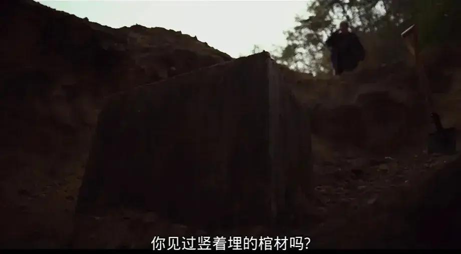 更詭異的是,棺材是直立着埋在土中,外形粗糙醜陋,周身纏滿的鐵鏈更是讓人對裏面的事物毛骨悚然。