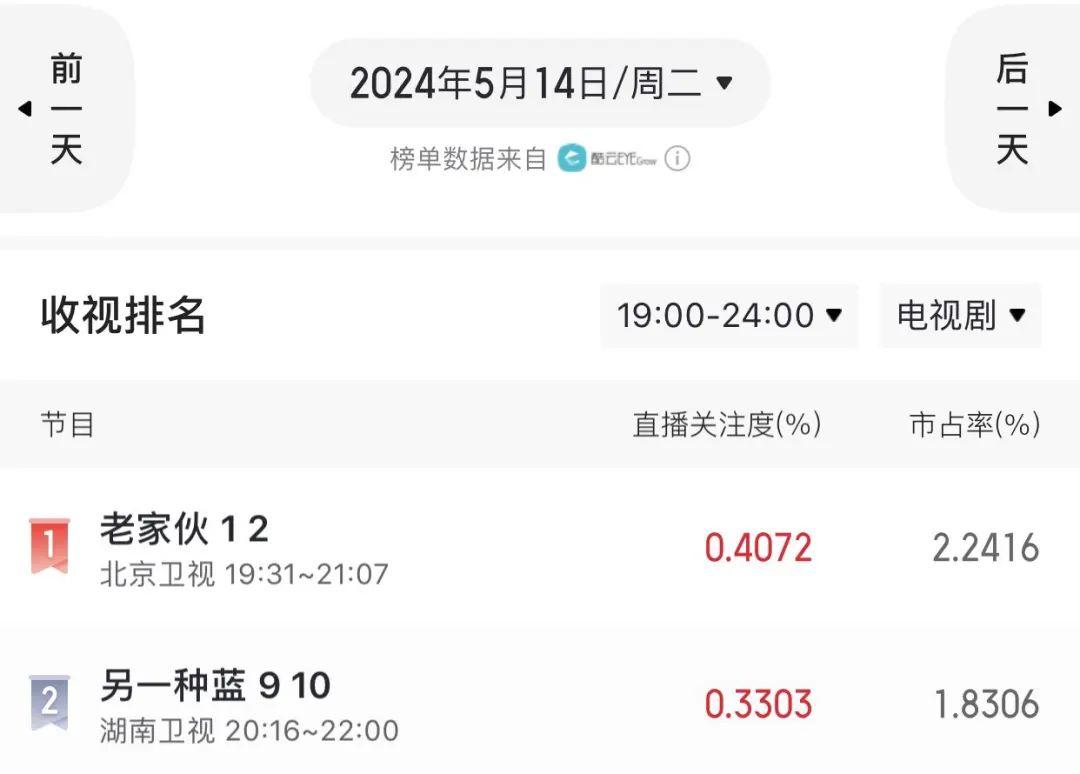播出後,《老傢伙》的收視也非常給力。
