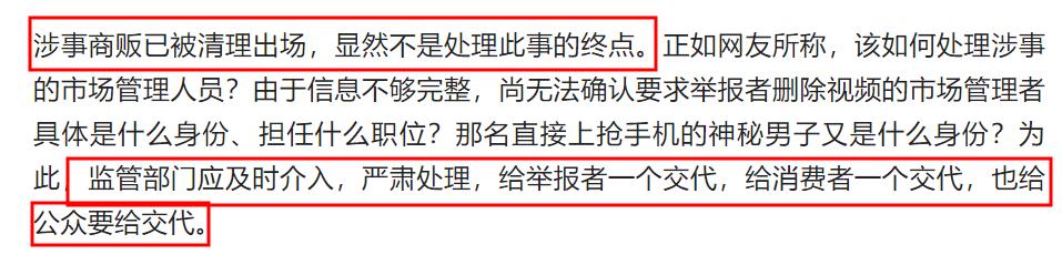 還有網友說這個通報沒有說到根源問題,該網友直言從視頻看,市場管理方和商戶是利益共同體,應該對該市場的管理方進行整頓。