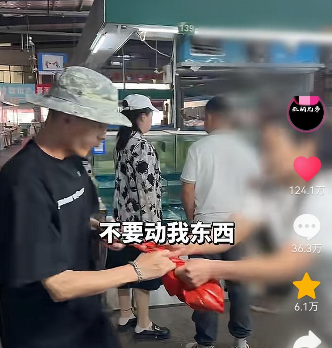 令人震驚的是,商家一邊說不要問她,一邊從狂飆兄弟手中搶下已經用紅色塑料袋裝好的爬爬蝦。