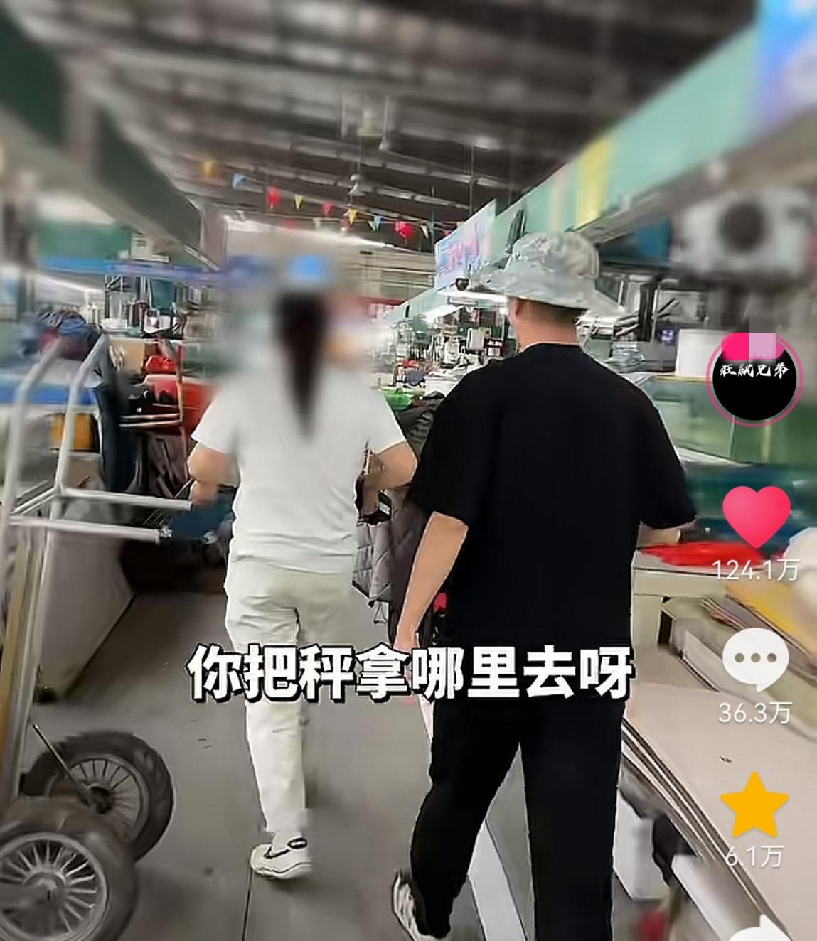 隨後商家拿起秤就跑。