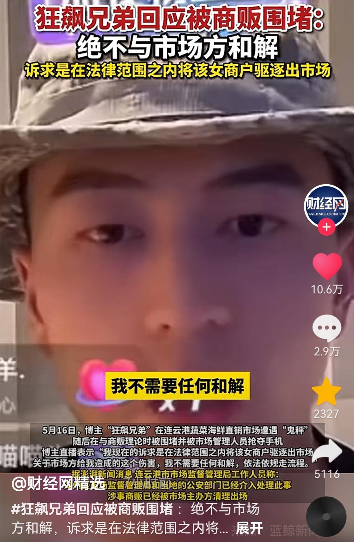 最後,狂飆兄弟表達了他的訴求,他說他絕不和市場方和解,希望在法律範圍內將涉事女商戶驅逐出市場。