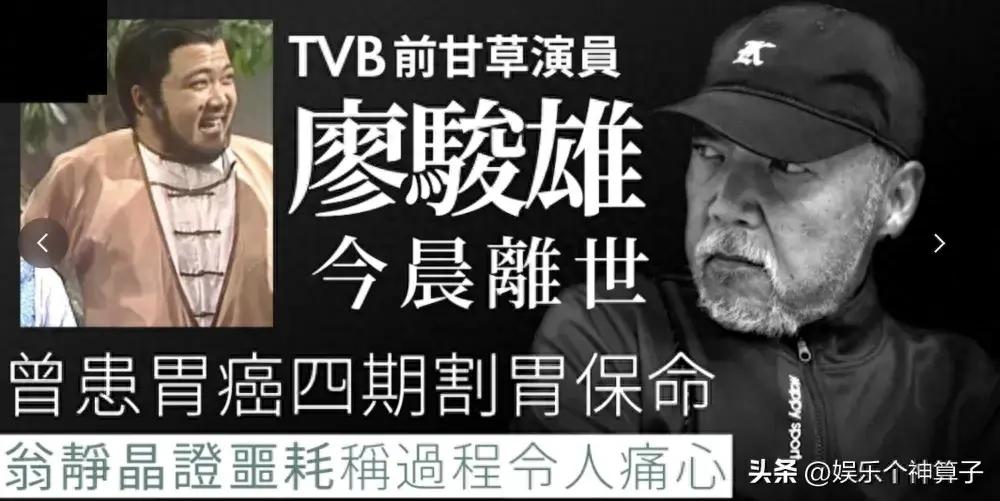 一路走好!知名演員廖駿雄去世,享年63歲,曾患胃癌四期割胃保命