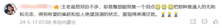 但這10分鐘劇情裏,網友們對其是讚不絕口,不僅盛讚該角色是全劇第一個淚點,更有人表示: