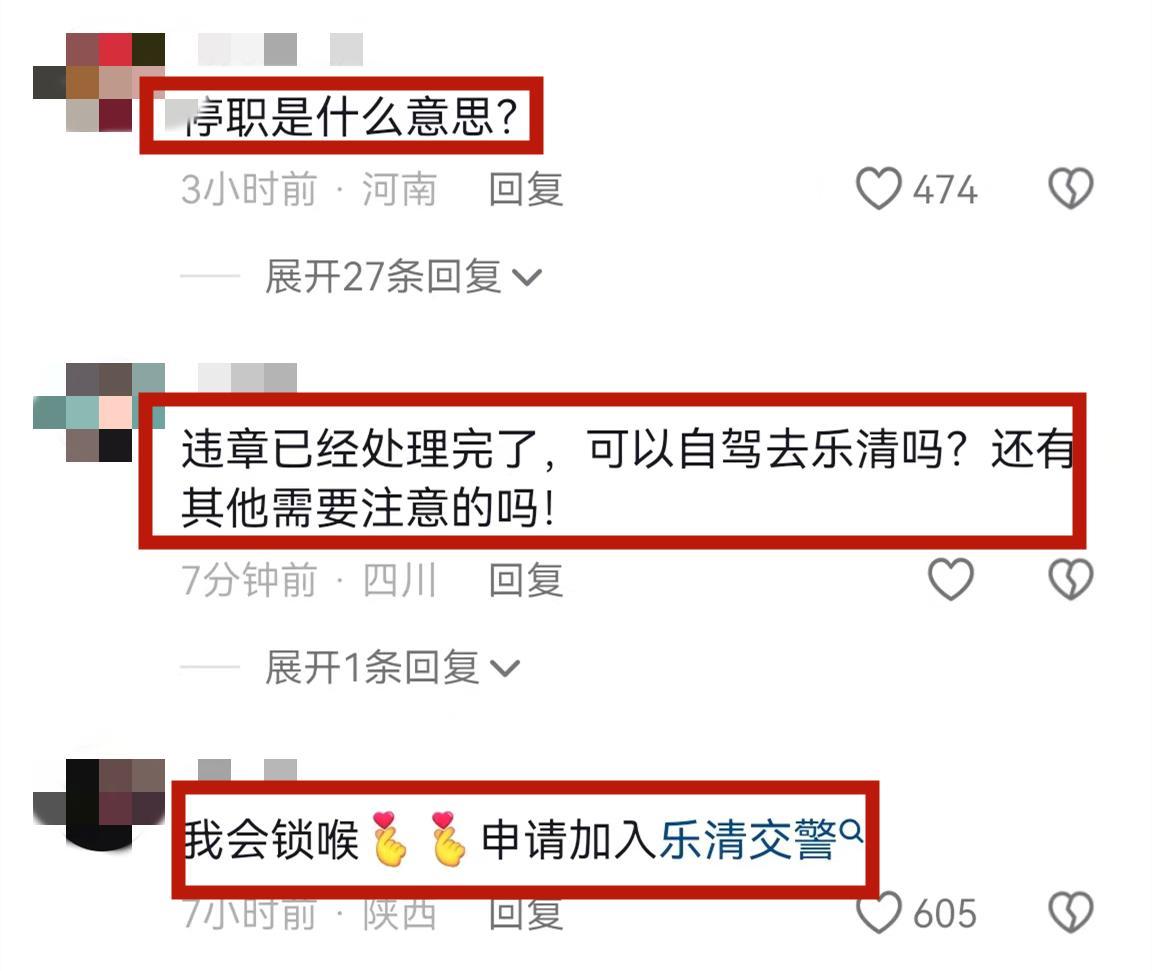 很快,樂清交警的官方賬號評論區就淪陷了。