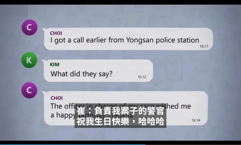 聊天中,崔鍾勳因酒駕被查,非但沒事兒,對方還祝福他生日快樂。