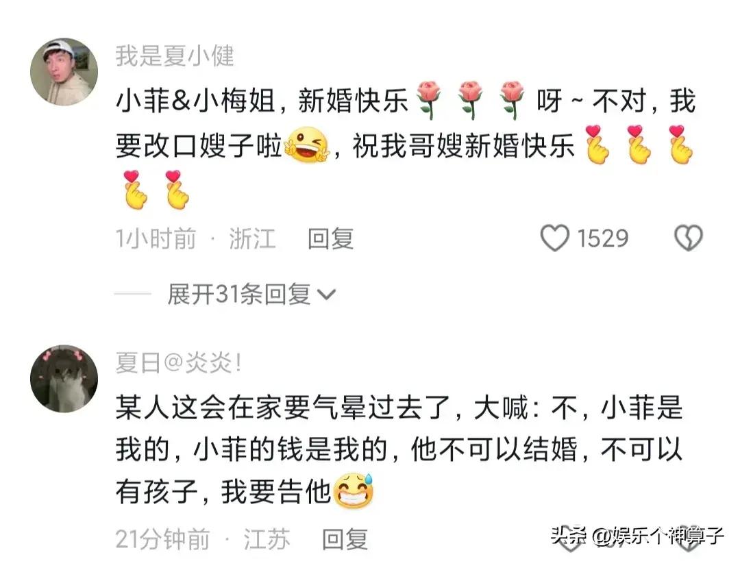 小菲和小梅姐新婚快樂,大家要改口叫嫂子了,真解氣,自己領證都沒這麼開心,大快人心,下一步,生娃,獨寵,讓某人獨自生氣吧。