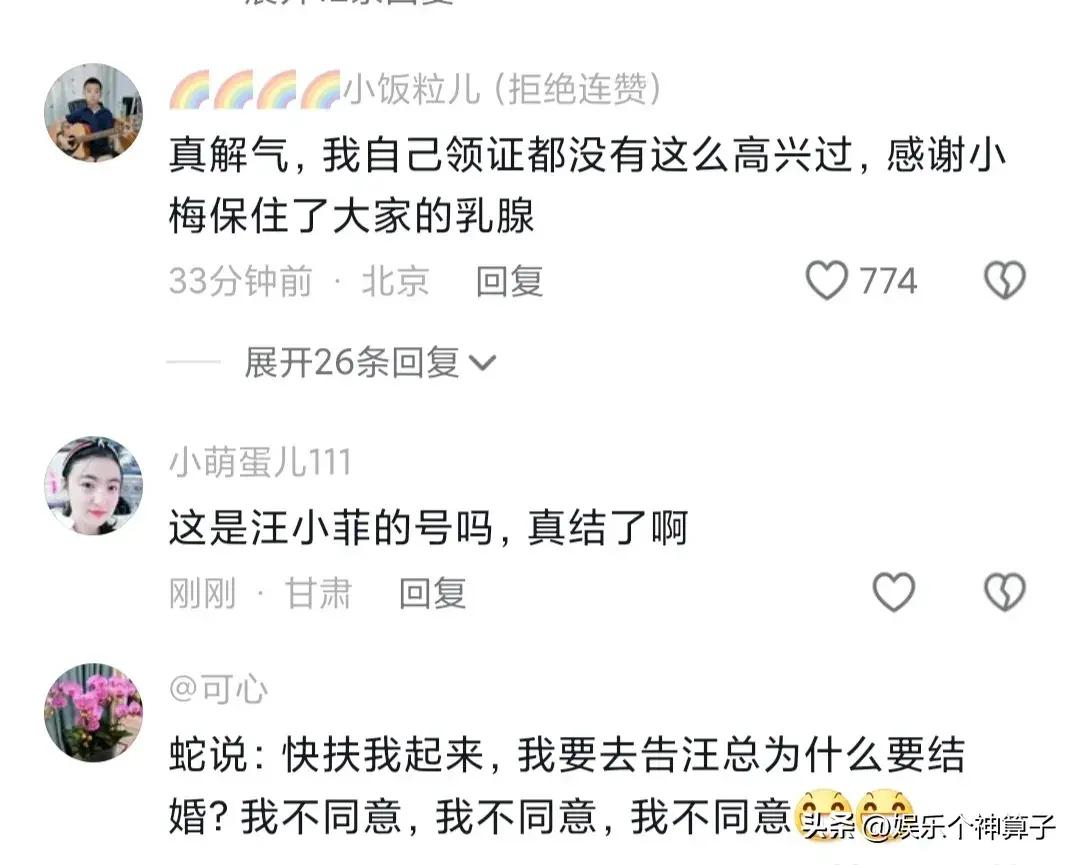 當然,這只是截取網友的一部分留言,調侃歸調侃,看的出來,大家從心底裏替汪小菲感到開心,並送出誠摯的祝福。