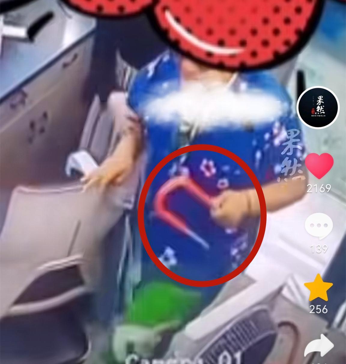 但事情並未就此結束,沒過一會兒,男子不知從哪裏拿來了一把U型鎖,他拿着U型鎖來到李女士跟前,對李女士的頭部進行擊打。