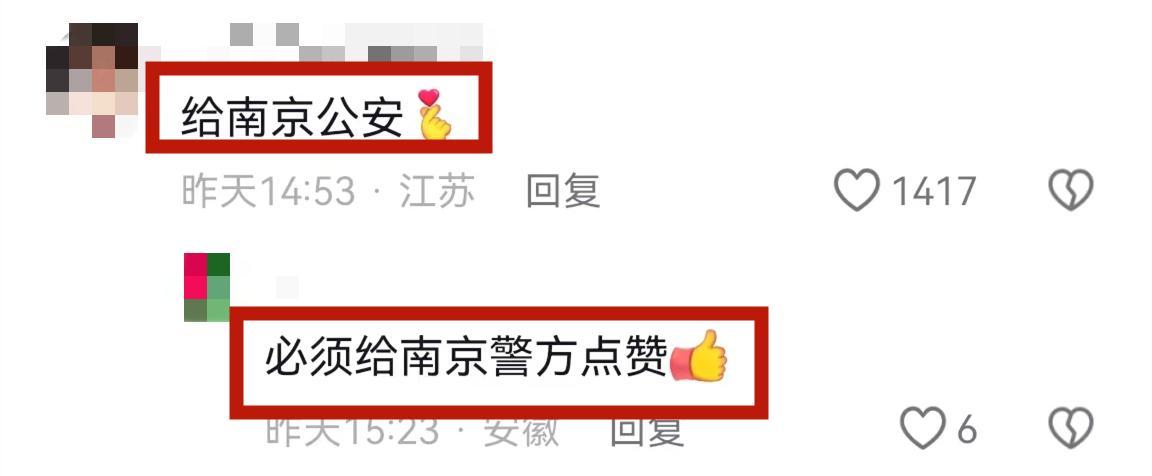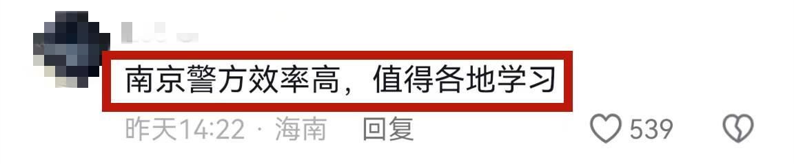 在評論區可以看到,網友除了評論這樣的處理大快人心之外,就是紛紛爲南京警方的高效率點贊。