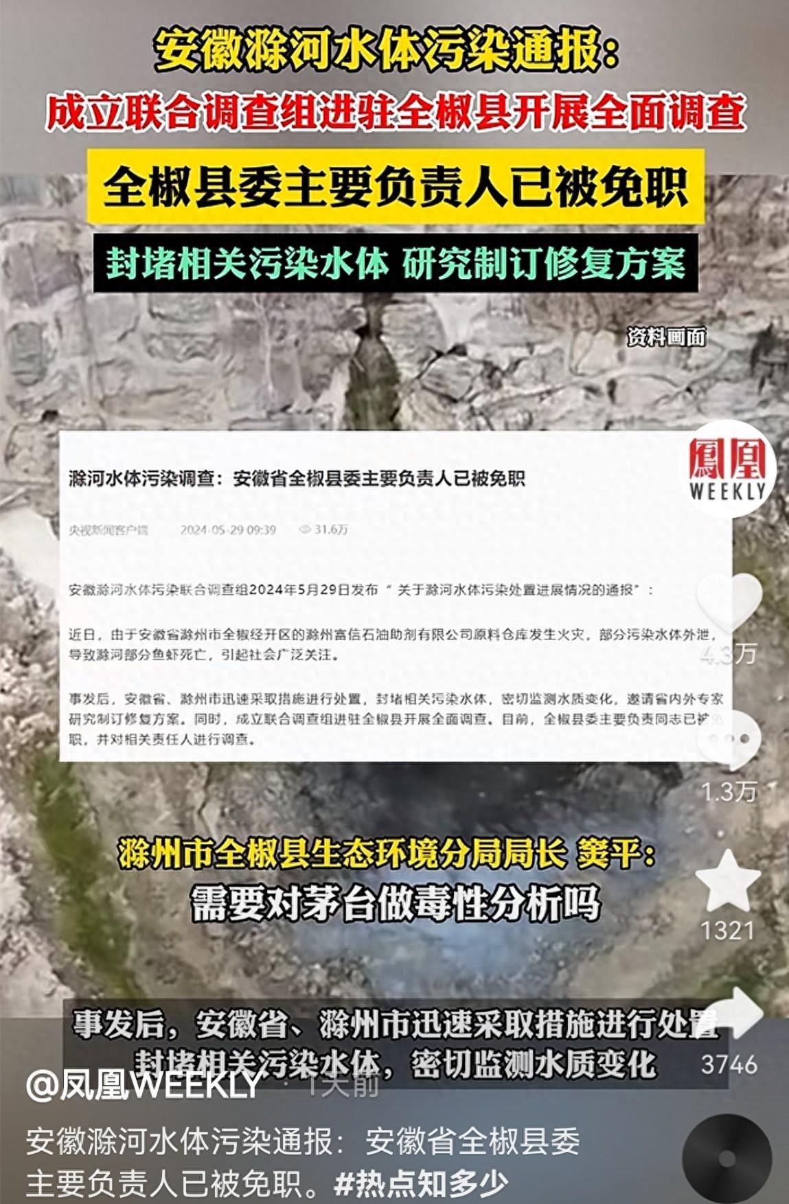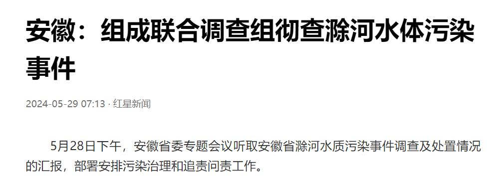 後續四:此事驚動安徽省委。安徽省召開了省委專題會議,聽取了滁河水質污染事件調查及處理情況的彙報,並部署安排污染治理和追責問責工作。