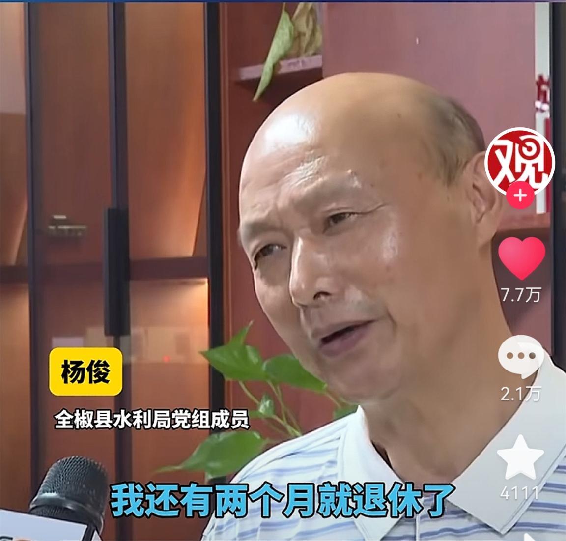 楊俊是全椒縣水利局D組成員,面對央視記者的詢問,他說“說實話,我還有2個月就退休了,我也不該過多的問這些事情。”