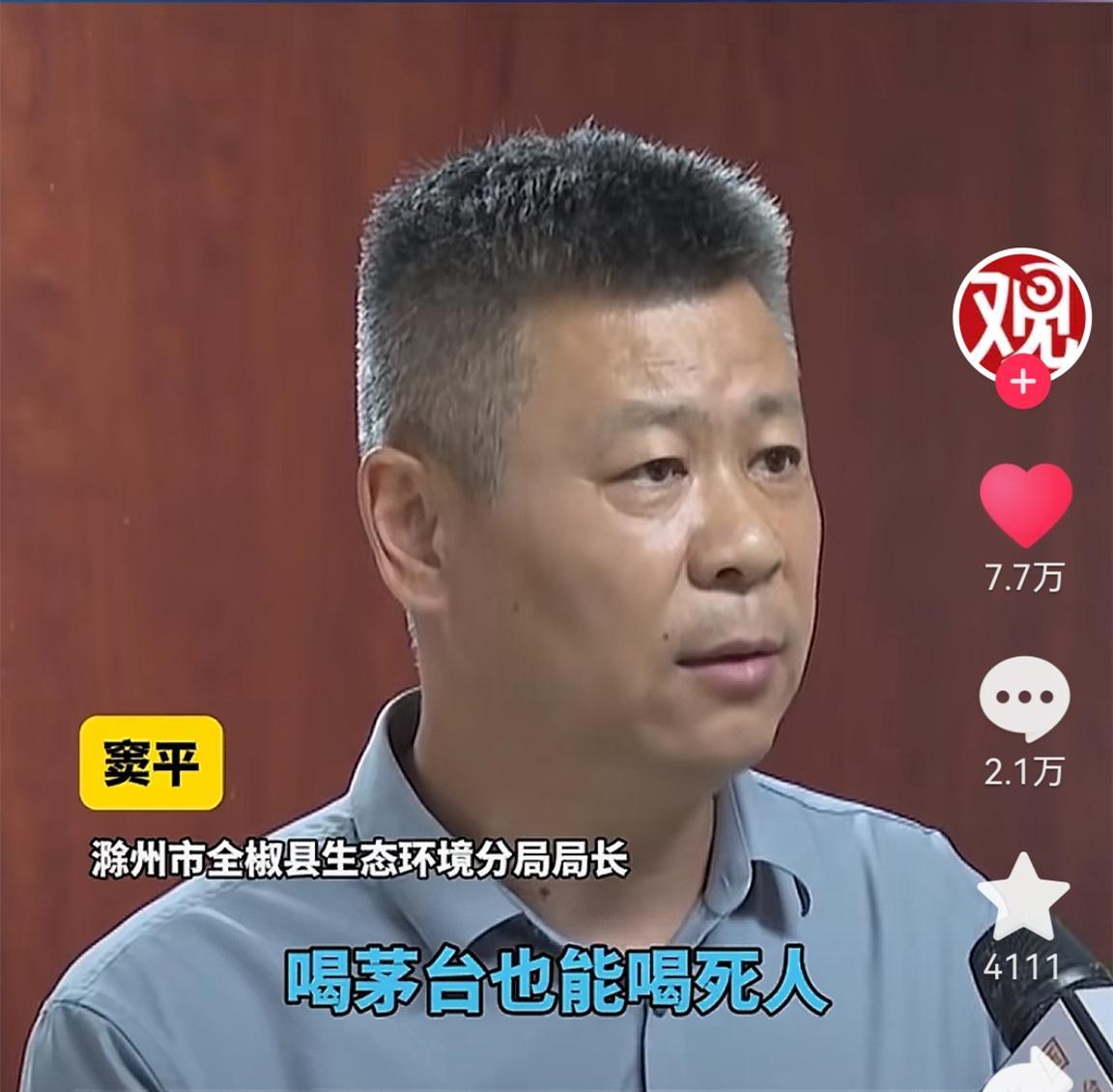 竇平是全椒縣生態環境分局局長,當央視記者問他對被污染的水源是否做過水質檢測時,竇局長先是說“對消防的水,我認爲沒有必要做。”