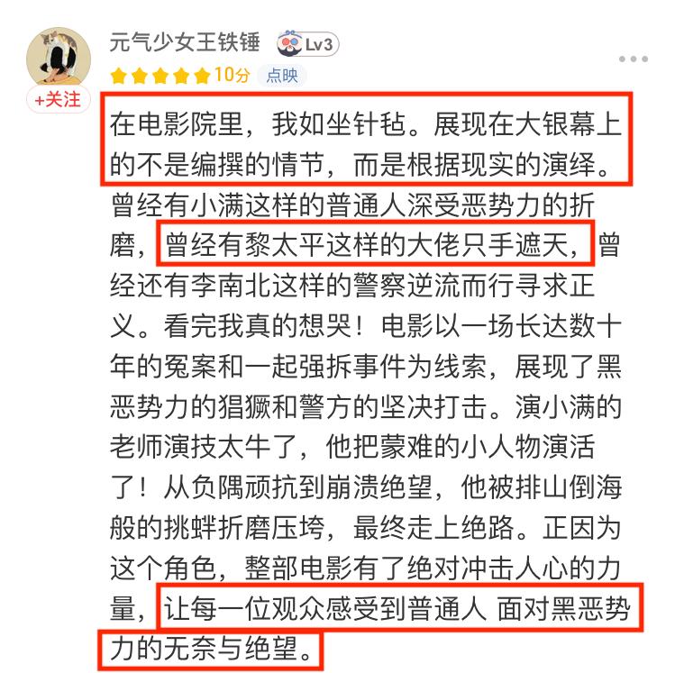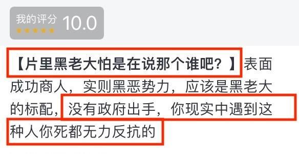 還有觀衆說,沒有政府出手,你現實中遇到這種人你死都無力反抗的!並暗戳戳的表示自己感覺到了,片裏黑老大怕是在說那個誰吧?