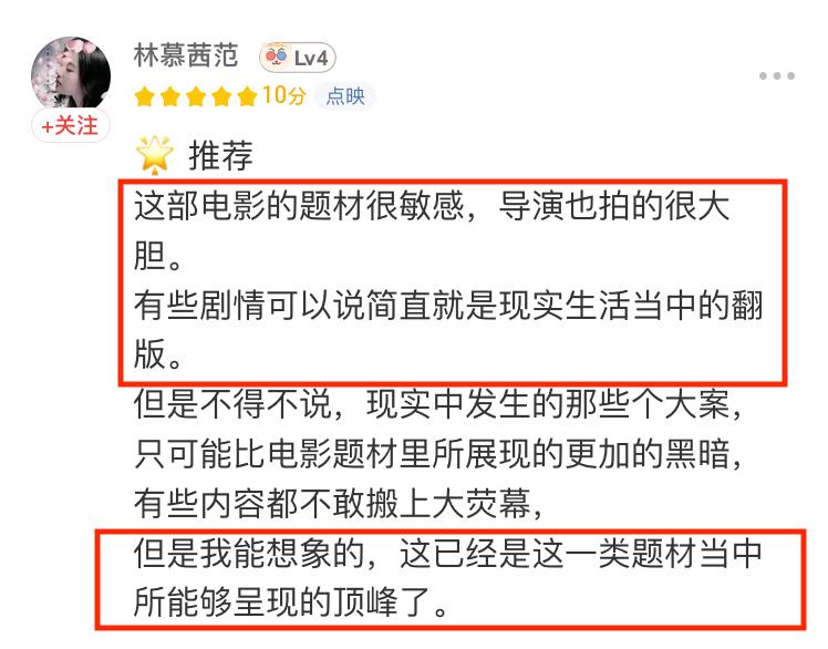 就像這位觀衆說的,這部電影的題材很敏感,導演也拍的很大膽。有些劇情可以說簡直就是現實生活當中的翻版。