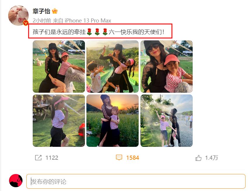6月1日晚,章子怡也更新社交賬號了,她曬出了六一兒童節和兒子女兒一起過節的照片。
