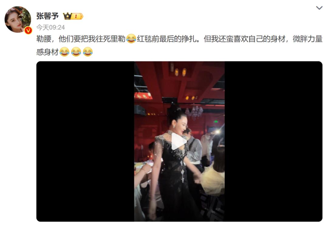 因爲在紅毯前勒腰,張馨予這次還上了熱搜,對此她也專門發博解釋了自己是大骨架,102斤這個體重還不算太瘦。