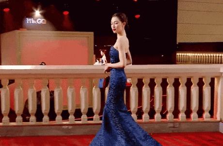 鍾楚曦在紅毯上一向會穿,這次以一襲藍色魚尾裙亮相,提着紅色口金包,非常精彩的撞色搭配。