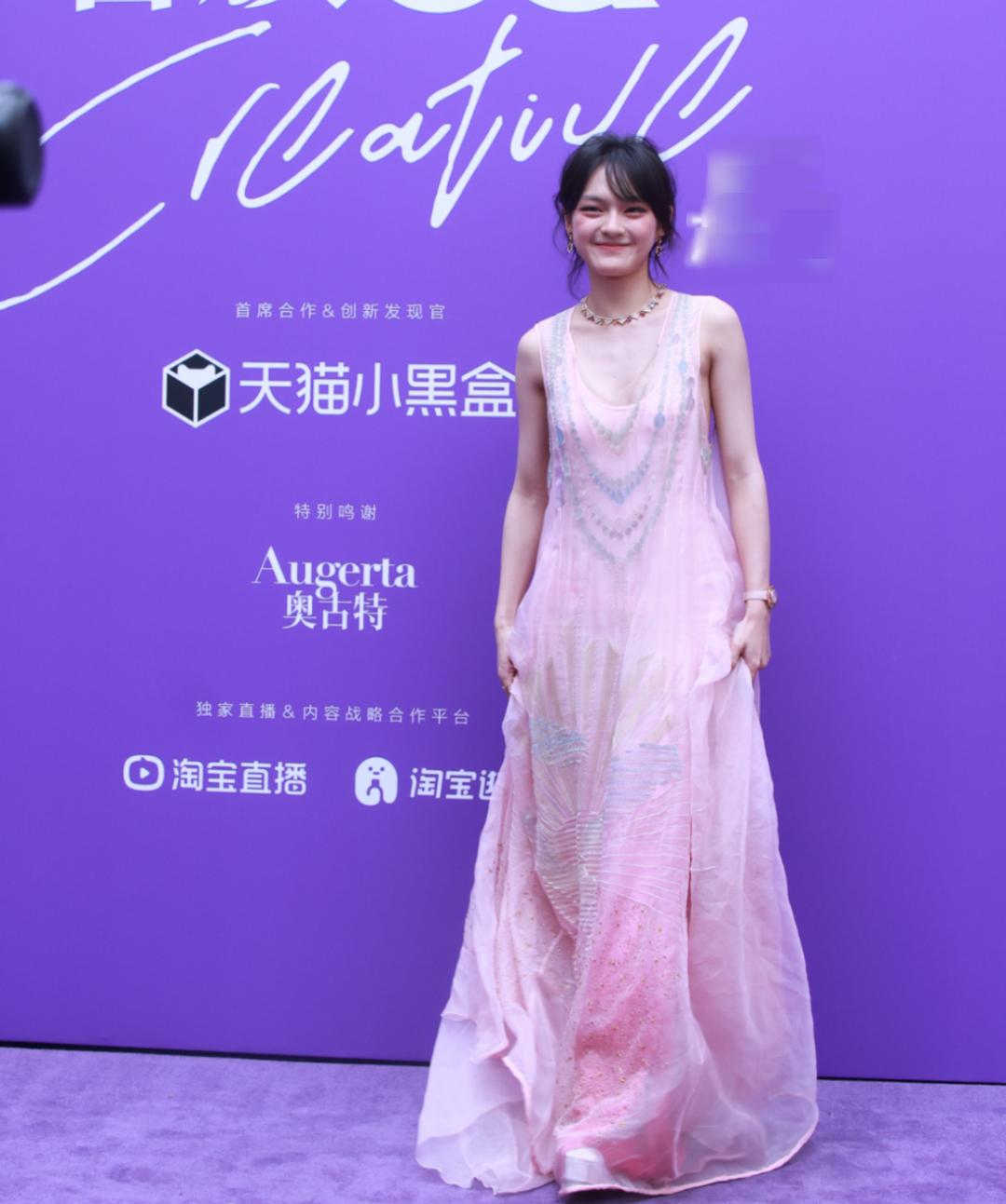 只不過細看,裙子有點皺巴巴,像是沒來得及熨燙就穿出來走紅毯。