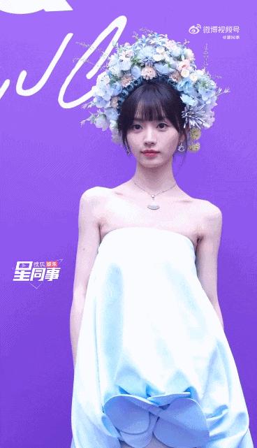 就是瘦得過於“骨感”,而且這件禮服的兩段式設計屬實不顯個,讓一個接近170的高挑美女直接變成五五分。