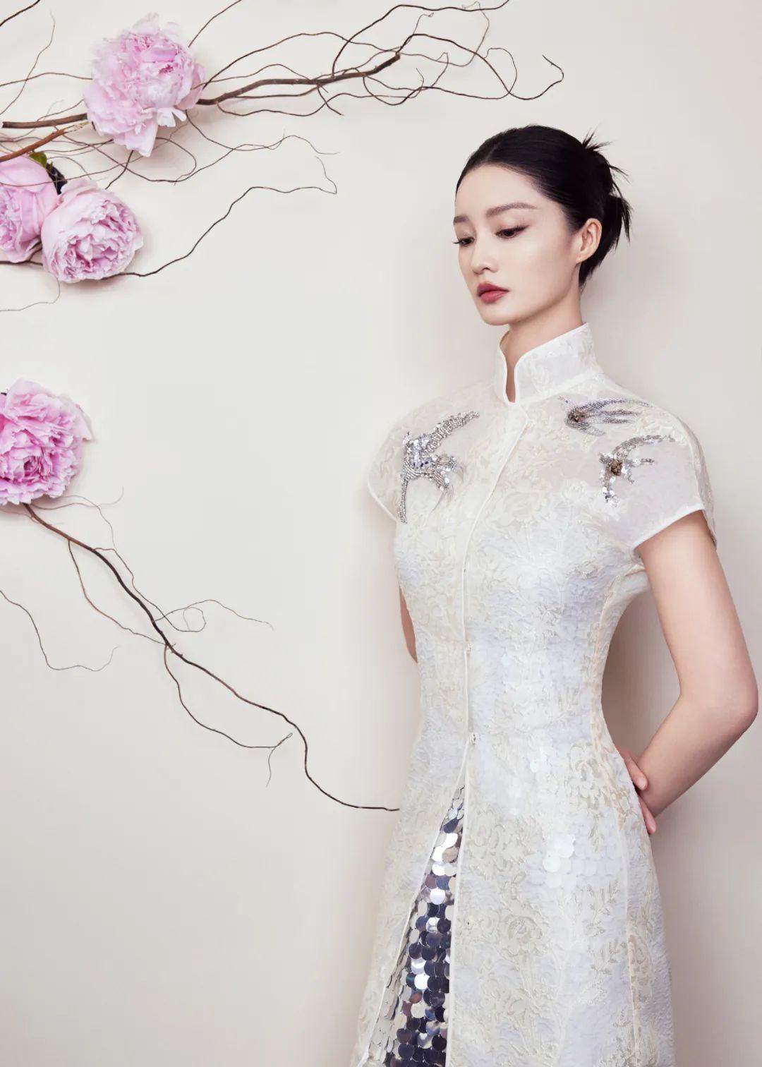 172cm的她,頭小身材修長,這條立領修身的旗袍風格長裙完全發揮出她的優勢,精修大片美得如詩如畫。
