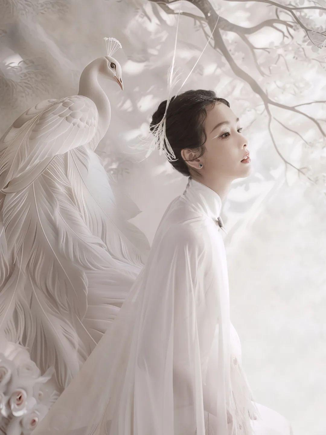 再加上孔雀羽毛披肩和頭飾,確實有幾分孔雀公主的意思,高貴典雅。
