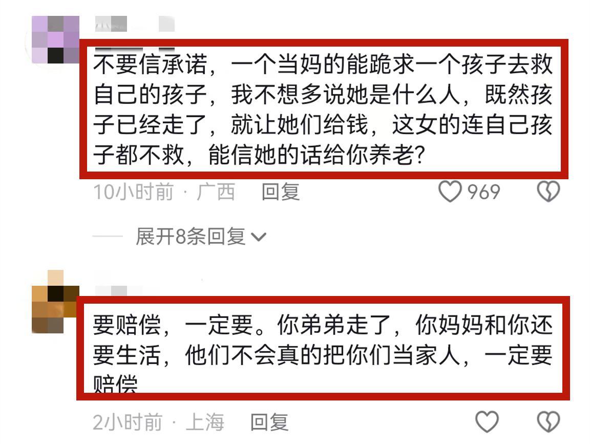 對於被救孩子的母親當時下跪讓王賽救人的行爲,很多網友進行了吐槽。