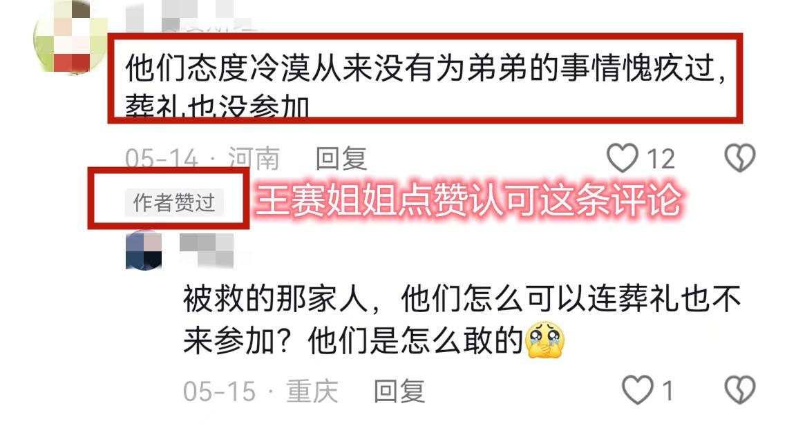 但是王賽的姐姐卻在網上發聲,怒斥被救小孩家屬冷漠。