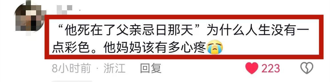 有網友感嘆“他死在了父親忌日那天,他媽媽該有多心疼。”