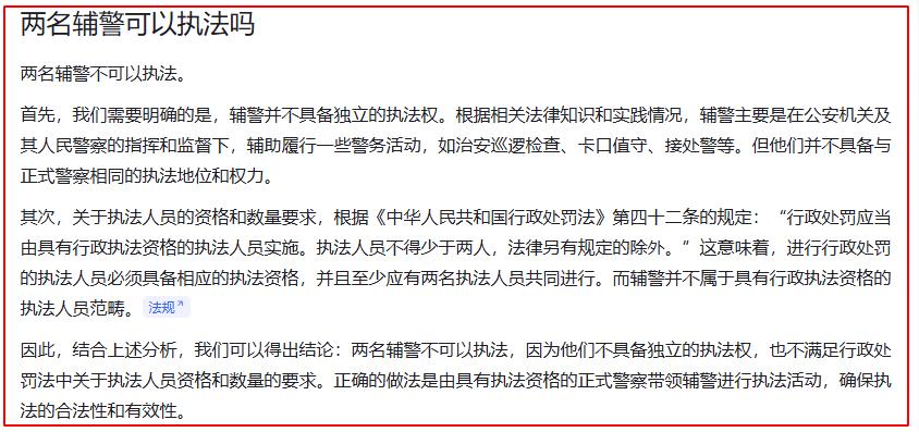 衆所周知,輔警不是正式的執法人員,也不具備執法權,所以爲了確保執法的合法性,輔警出警時必須要有正式警察在場。