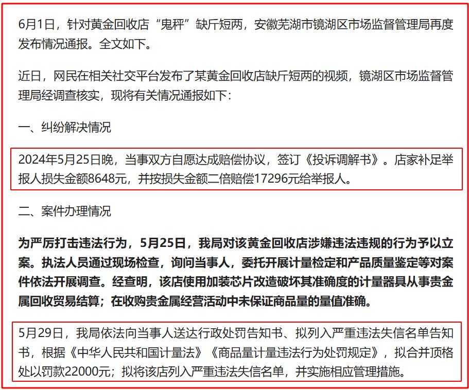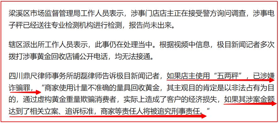 鬧大!無錫黃金五兩鬼秤後續:警方介入,律師發聲,店主恐擔刑責