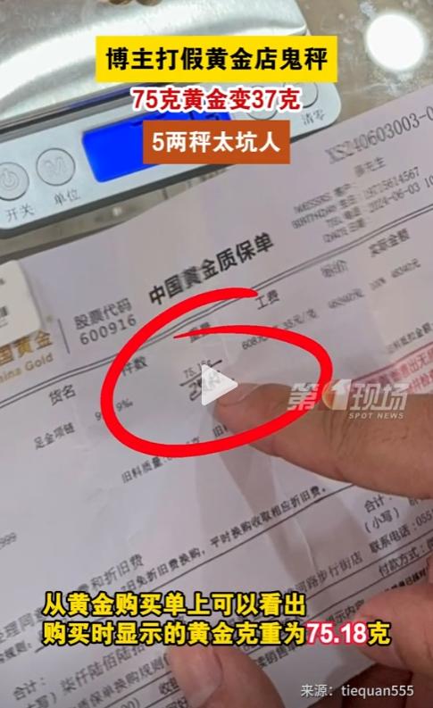 收完錢之後,買賣關係也就成立了,於是他便拿出黃金髮票大聲質問店主:“爲什麼75克的金項鍊到了你店裏就成了37克了?你這用的是五兩秤吧?”