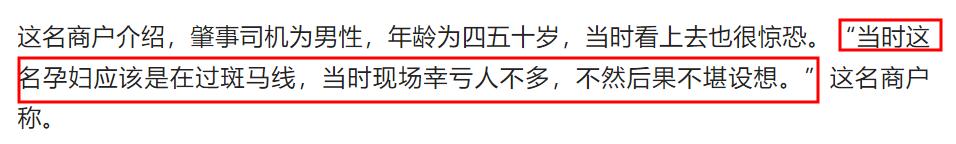 該商鋪老闆直言“當時這名孕婦應該是在過斑馬線,當時現場幸虧人不多,不然後果不堪設想。”