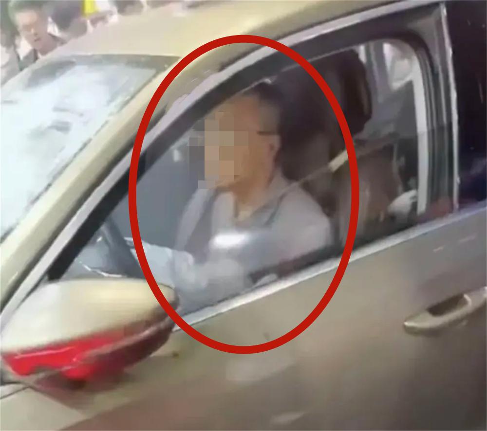 在駕駛室裏,一名戴着眼鏡,約莫四五十歲的中年男子坐着一動不動,沒有下車查看情況。