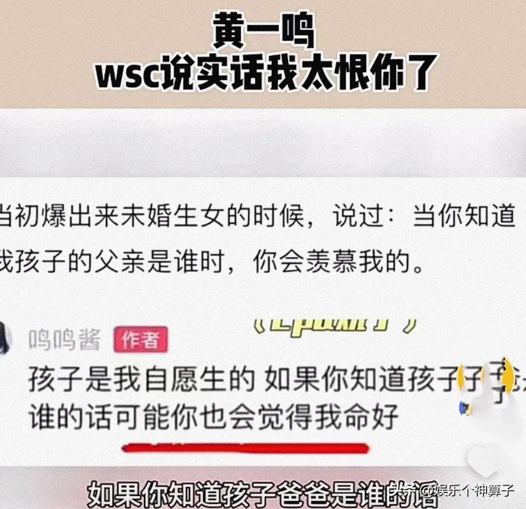 大瓜!女網紅黃一鳴暗示孩子父親是WSC,吐槽王思聰不負責任