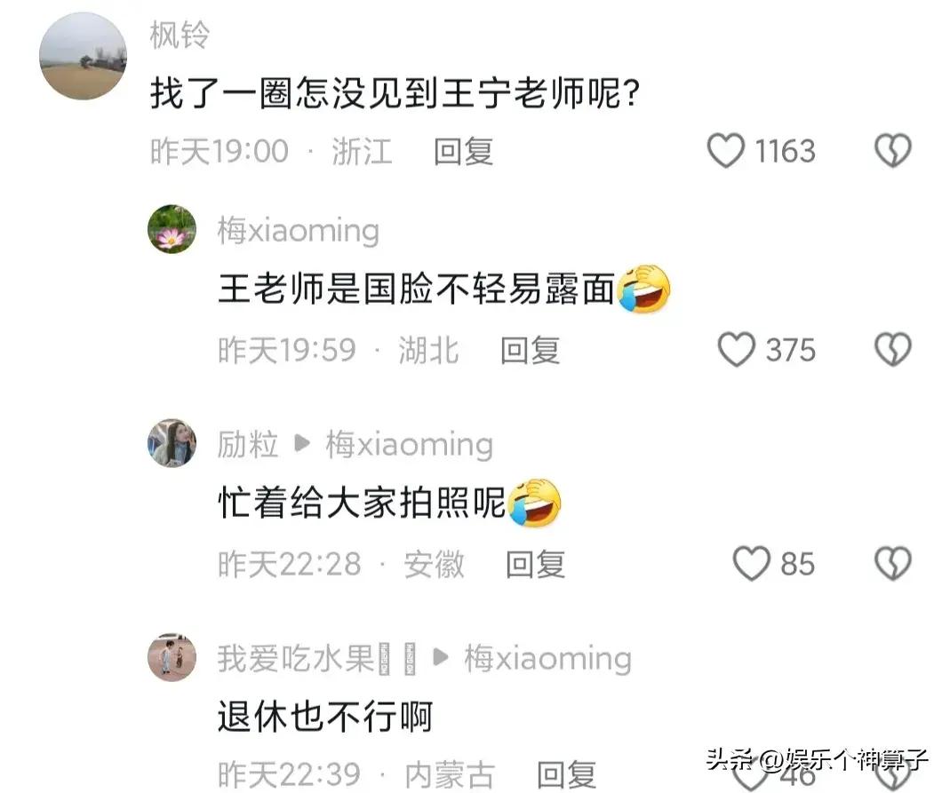 有趣的一幕出現了,大家都在尋找王寧老師,金龜子曬出合照裏並沒有老公的身影,最後,有網友曬出更多的現場合照,終於看到王寧老師,站在角落裏,穿着樸素,笑容可掬,不得不說,真的好低調。