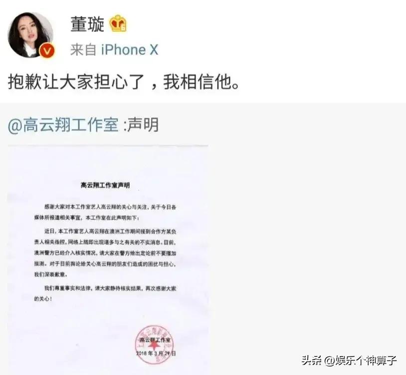 當年,高雲翔捲入性 侵 案,形象盡毀,事業跌入低谷,然而,董璇仍選擇不離不棄,幫助並相應丈夫,最後,法院判決無罪釋放,兩人的婚姻也走到了盡頭。